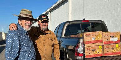 Picking up food to deliver to Community Outreach.